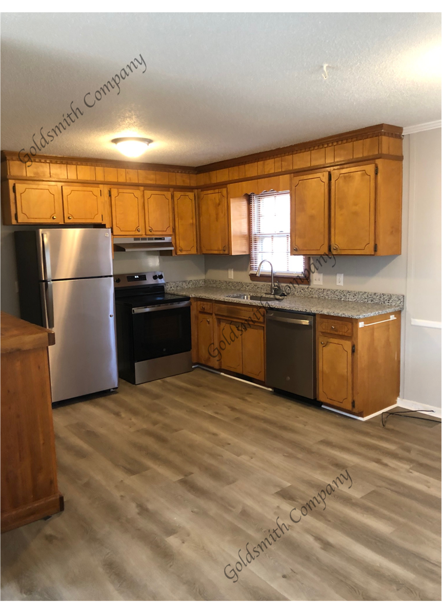 Brick Ranch House 3BR/2BA, 1200 Sq.Ft. Living Room with Brick Fireplace and ceiling fan. Luxury LVP flooring throughout. Large Eat-In Kitchen with granite countertops and stainless steel range, refrigerator and dishwasher. 1 car carport with storage room. Heat Pump/Central Air. Large backyard. Smoke free environment. Small pets negotiable with Owner approval.